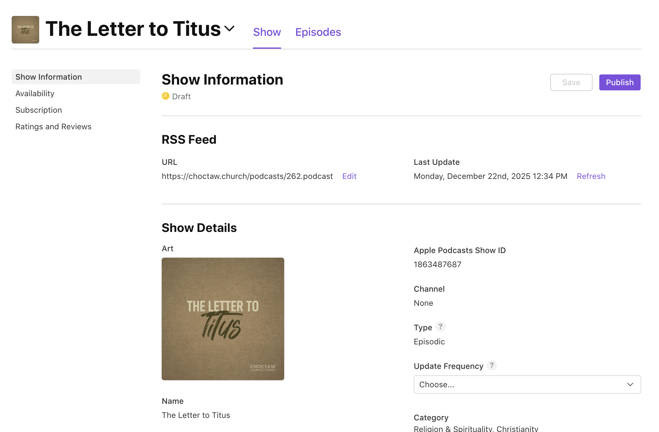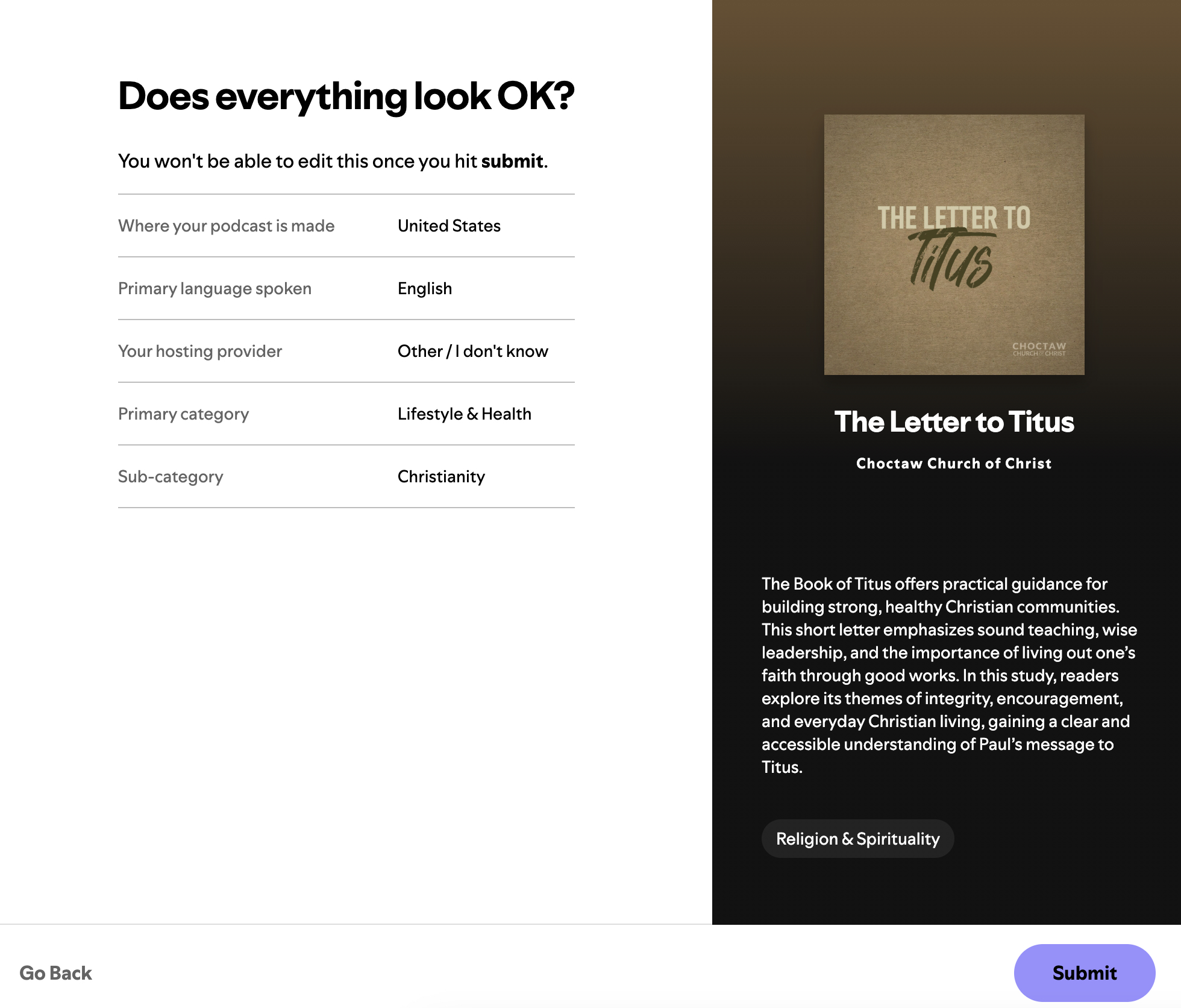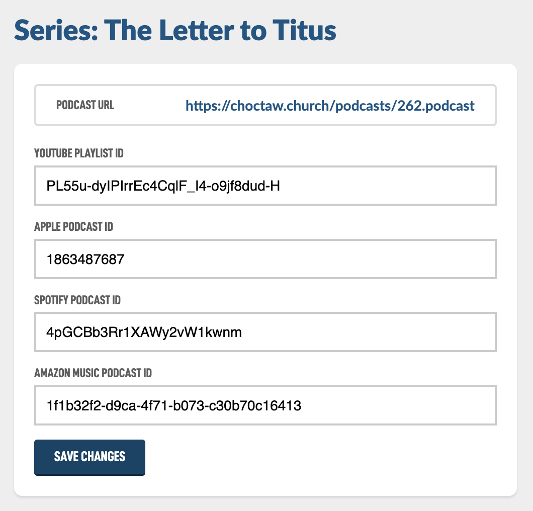 For this Help Guide we'll be submitting a real podcast from our congregation called The Letter to Titus. Here is our podcast image we created. Here is a Help Guide on creating nice Podcast Images. Also here are the form fields we will need to create.