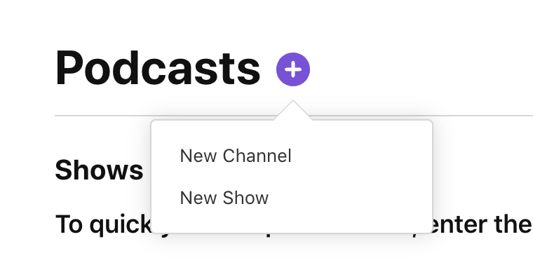 After you have created an account, tap on the Plus sign next to Podcasts and then choose New Show.