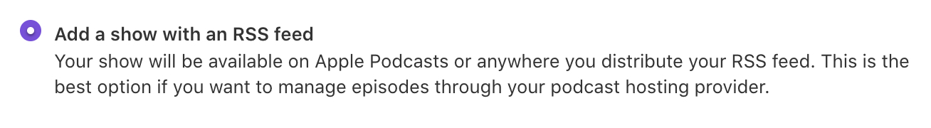 Now choose Add Show with an RSS feed