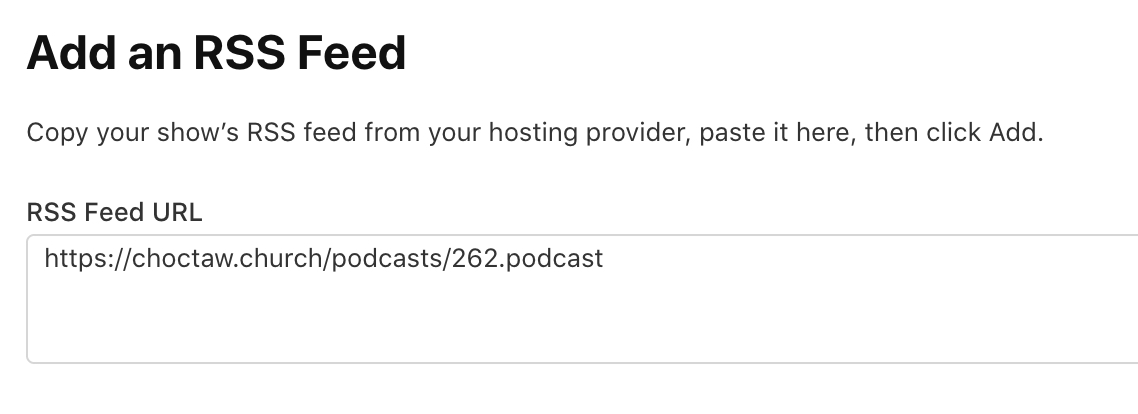 This will present you with the option to add your RSS Feed URL once again.