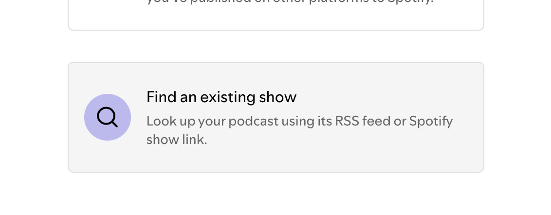 In the drop down choose Add a new show. On the next form choose Find an existing show, you're always looking for the RSS feed option.