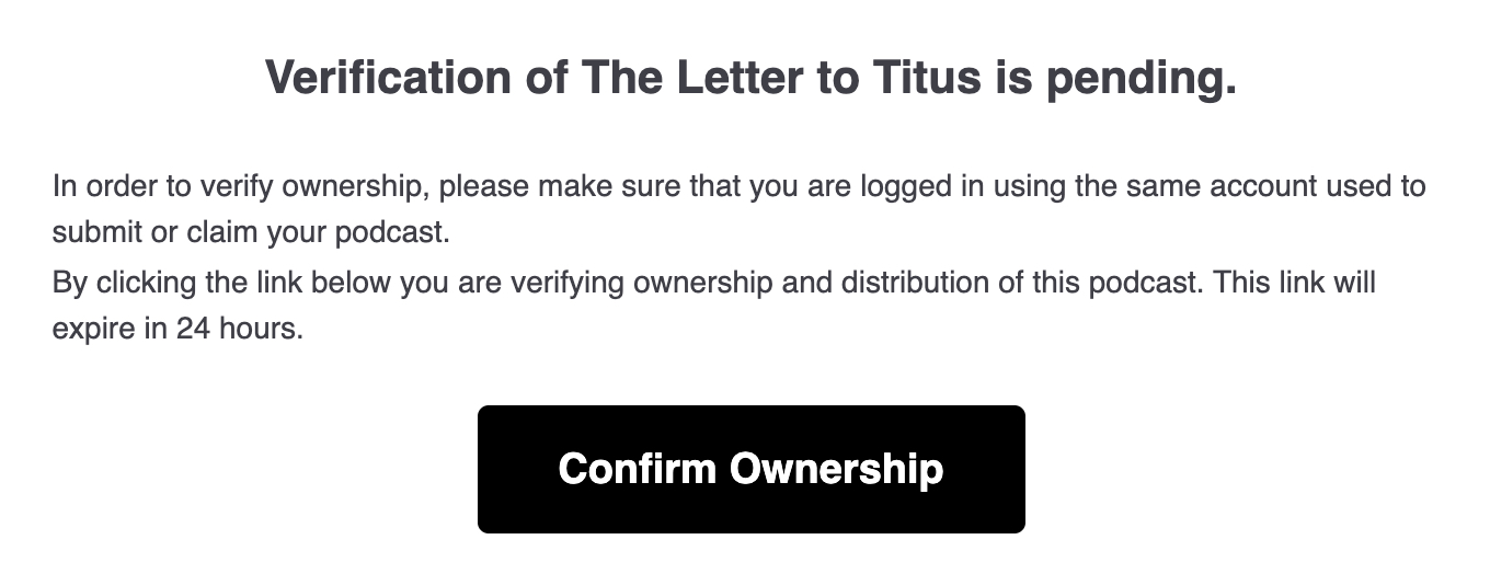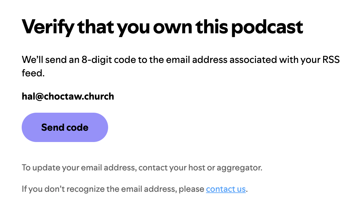 After you hit next it will prompt to send a code to the email associated with the podcast.
