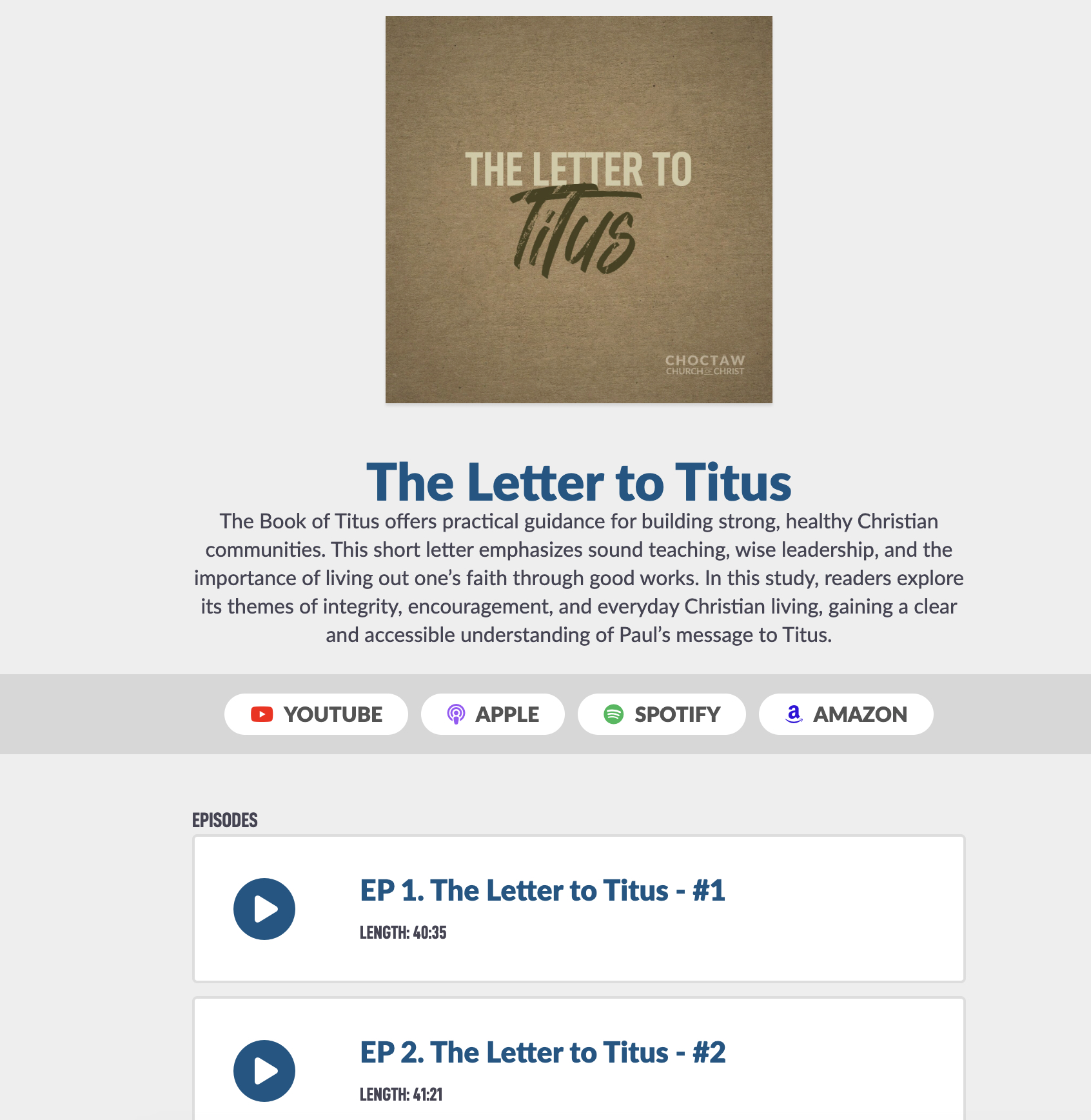 Your podcast can be uploaded to a few different platforms. At the time of this writing we have links available for four different platforms: YouTube, Apple, Spotify and Amazon Music.