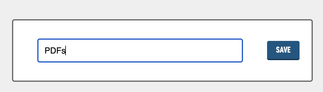 In the Add a Folder form, create a folder with the exact name "PDFs". The folder name must be pdfs for the Video module to find it. Hit Save.