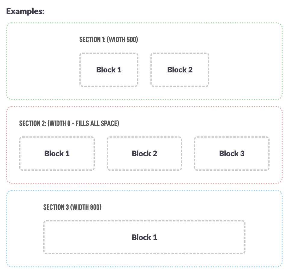 This gives you flexibility to create creative layouts by adjusting each section’s width (click the icon in a section to change it). You can make some sections stretch across the whole screen, and others stay at a fixed size.