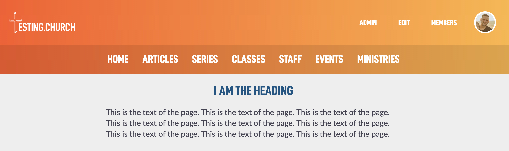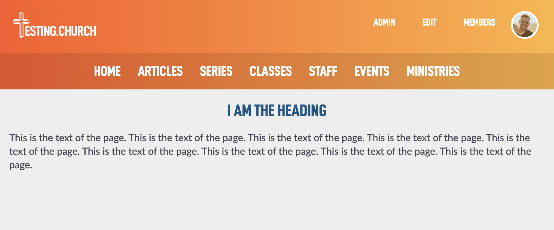 Now hit < Page Content in the top left because we need to go add a new section above our Text.