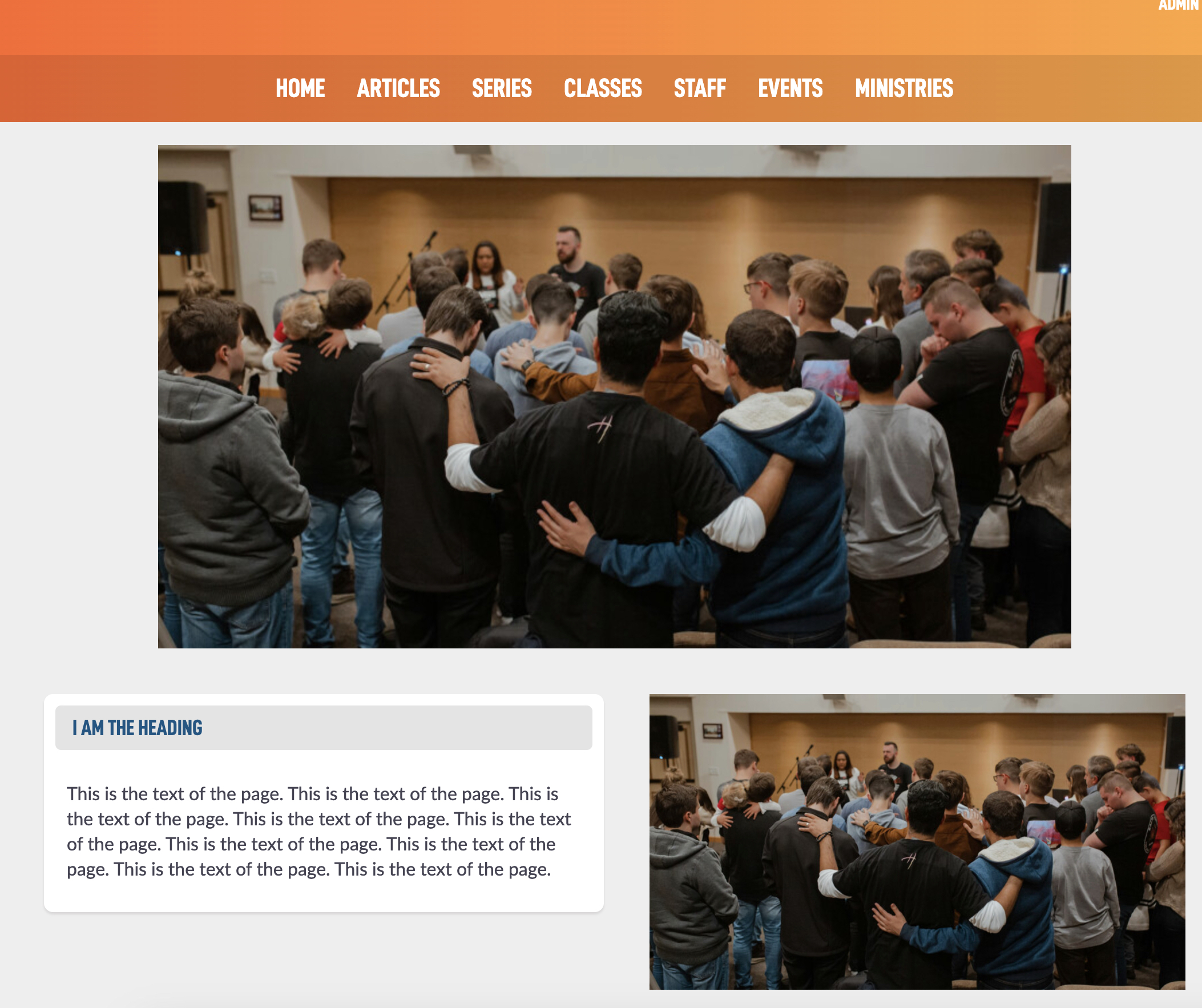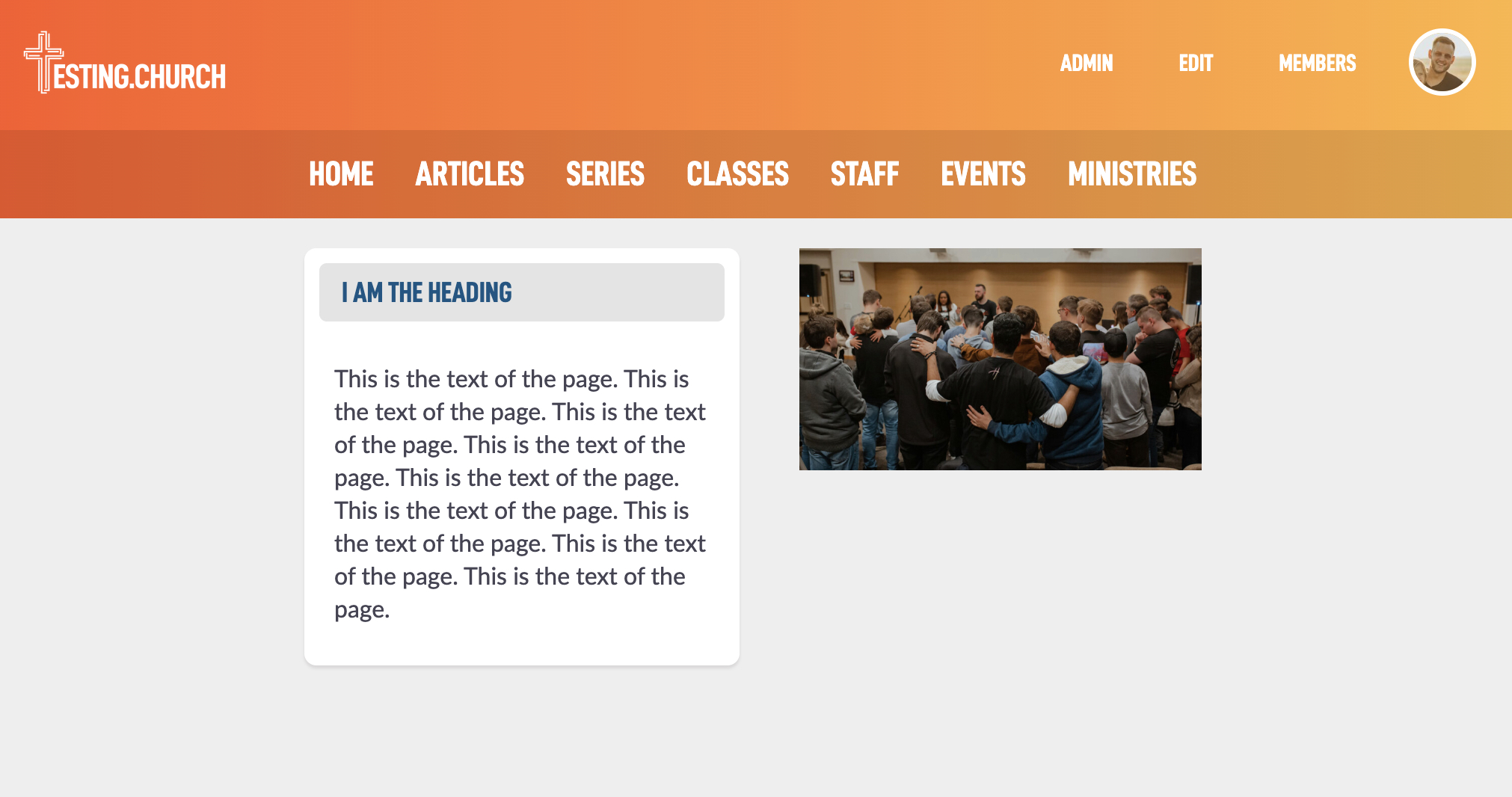 Now let's attempt to put an image of our group next to the text. On the main edit page, click the + Block next to our current Text block.